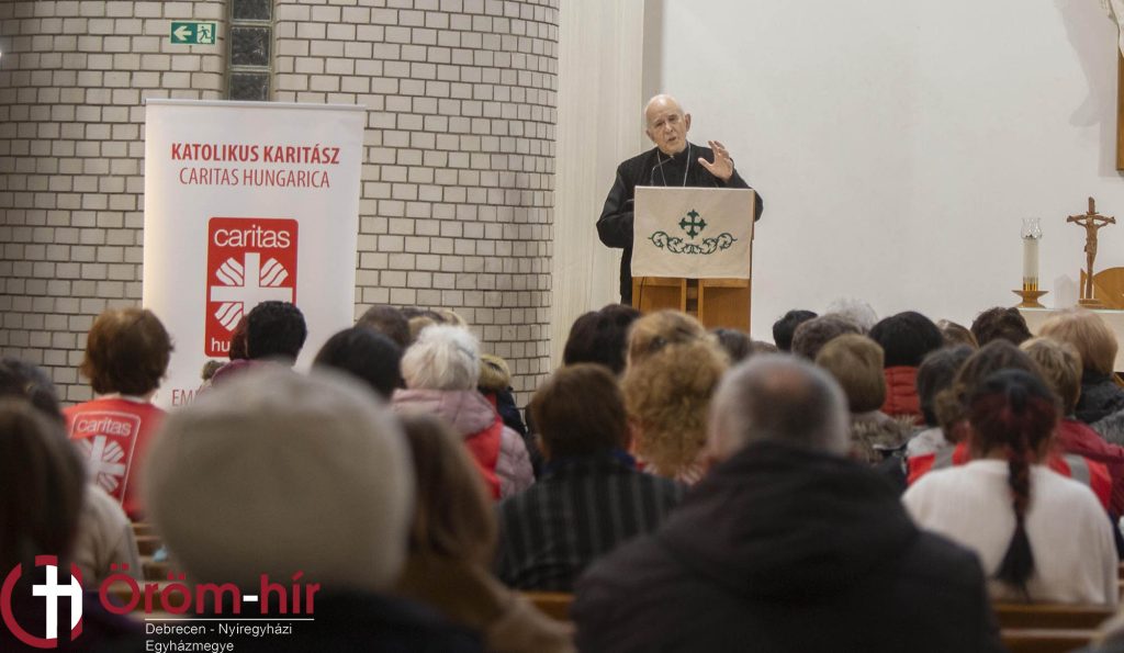 A találkozó elején Bosák Nándor nyugalmazott debrecen-nyíregyházi püspök atya, az egyházmegyei karitász alapítója emlékezett vissza a kezdeti évekre. Az egyházmegyei karitász volt az első intézmény, amelyet létrehozott az egyházmegye alapításának évében, 1993-ban. Ez is azt mutatja, hogy a tevékeny szeretet gyakorlása, a rászorulók szolgálata már akkor az egyik legfontosabb feladata volt az egyházmegyének.