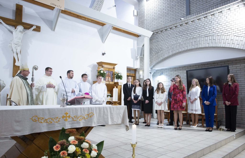 Palánki Ferenc debrecen-nyíregyházi megyéspüspök tizenegy fiatalnak szolgáltatta ki a bérmálás szentségét Szent Imre herceg, a magyar ifjúság védőszentjének ünnepén bemutatott búcsúi szentmisén, november 10-én a nyíregyházi Szent Imre-kápolnában.
