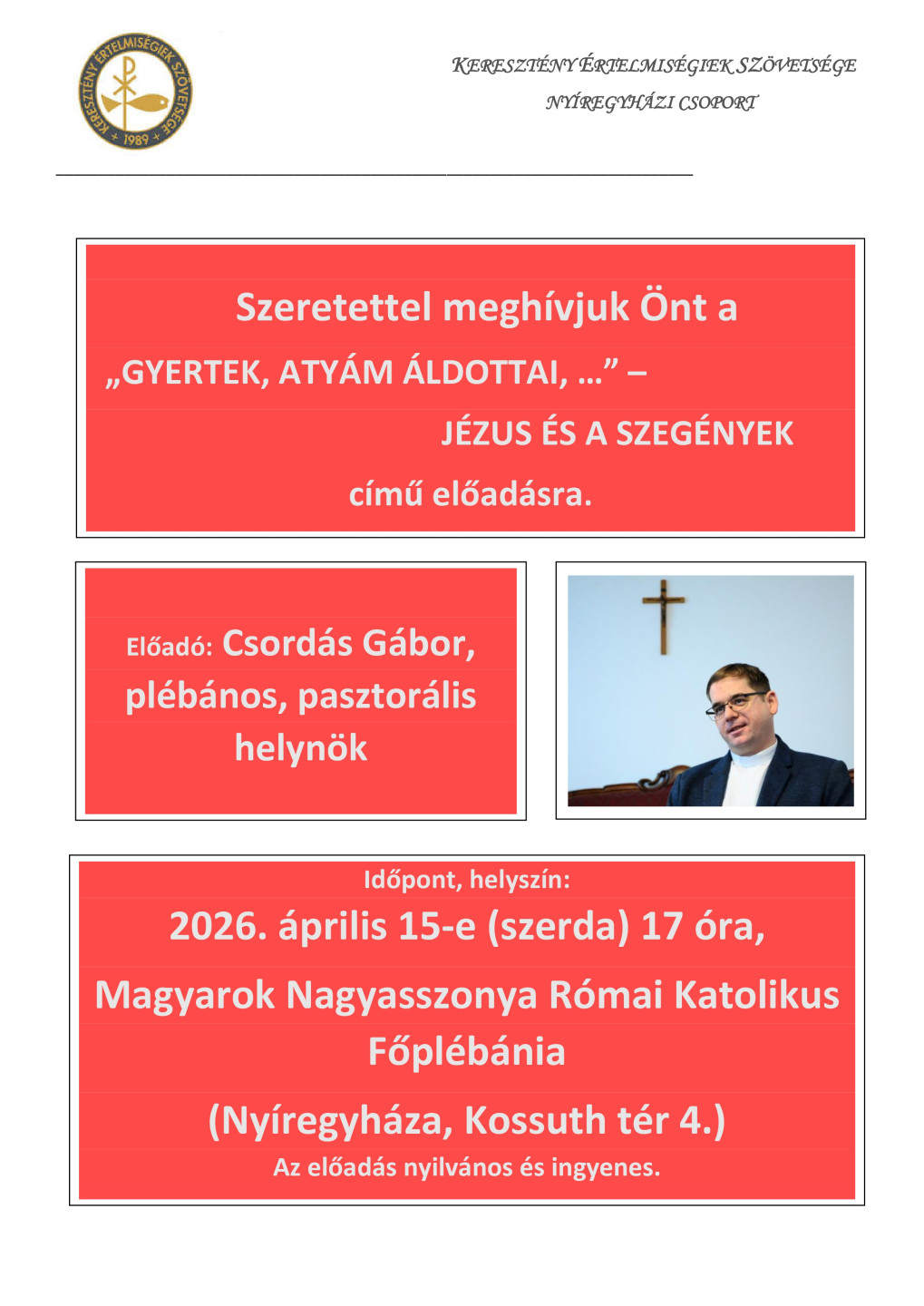 Köszönöm mindenki munkáját, és kérem Önökre a Jóisten áldását!