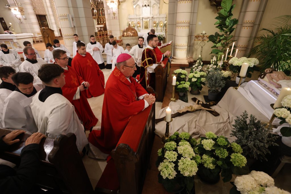Nagypéntek az egyházi év legcsendesebb napja: Jézus elítélésének, megkínzásának, halálának és temetésének napja. Az Egyház – ősrégi hagyomány alapján – ezen és a következő napon egyáltalán nem mutat be szentmise áldozatot. Arra a napra emlékezünk, amikor maga az örök Főpap mutatta be áldozatát a kereszt oltárán. A Jézust jelképző oltár teljesen dísztelen: nincsen rajta sem kereszt, sem terítő, sem gyertya. Palánki Ferenc debrecen-nyíregyházi megyéspüspök a nyíregyházi Magyarok Nagyasszonya-társszékesegyházban végezte a nagypénteki szertartást Németh István püspöki titkárral és az egyházközség papjaival, akolitusaival és ministránsaival.