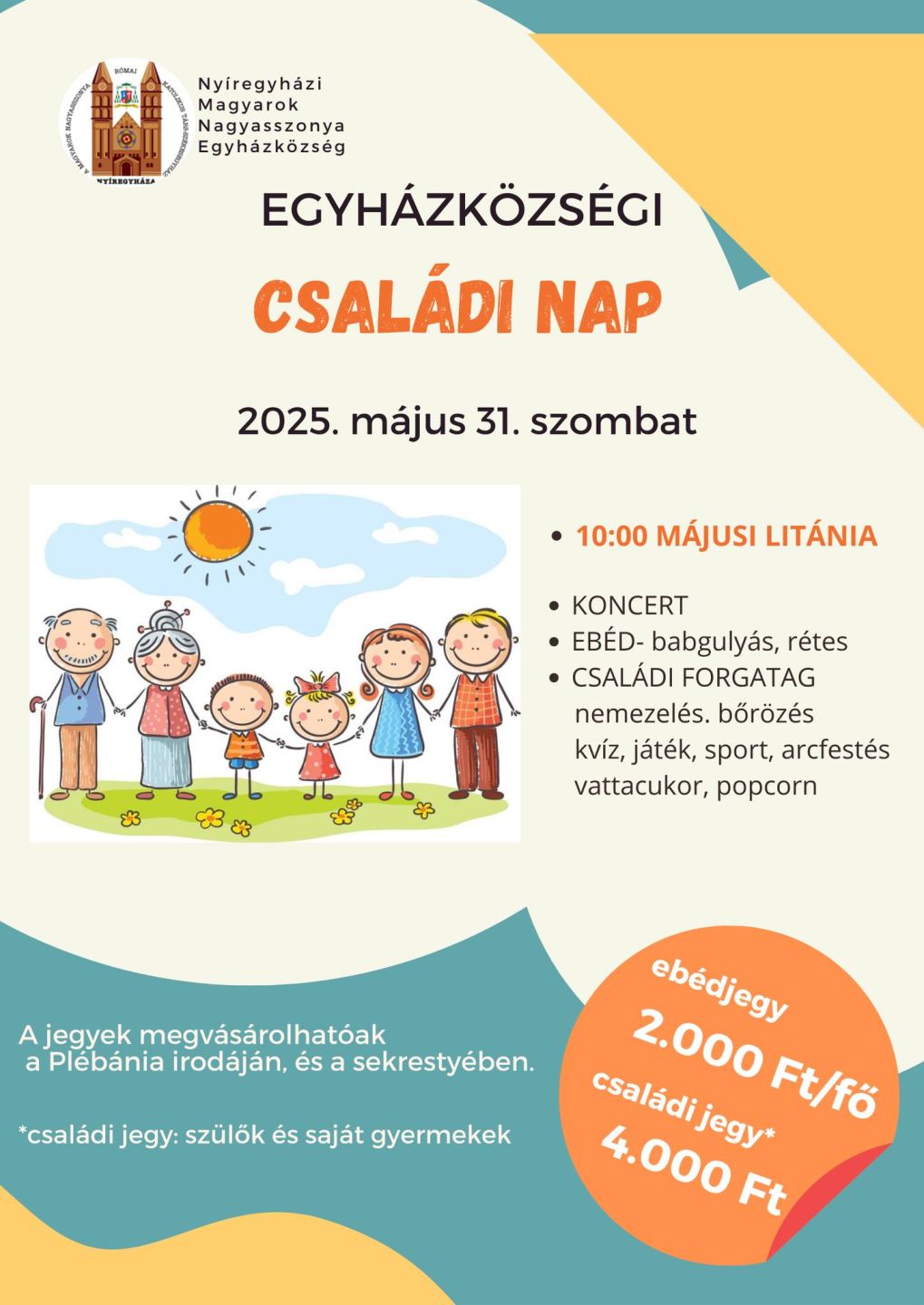 2025. május 31-én szombaton Egyházközségi családi napot szervezünk plébániánkon.