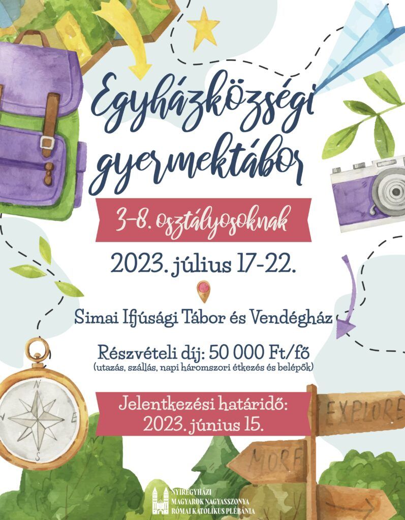 A Nyíregyházi Magyarok Nagyasszonya Római Katolikus Egyházközség nyári tábort szervez 3-8. osztályos korú római katolikus hit-és erkölcstan oktatásra járó gyermekek számára.