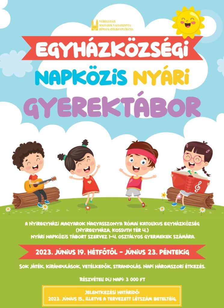 A Nyíregyházi Magyarok Nagyasszonya Római Katolikus Egyházközség nyári napközis tábort szervez 1-4. osztályos korú római katolikus hit-és erkölcstan oktatásra járó gyermekek számára.