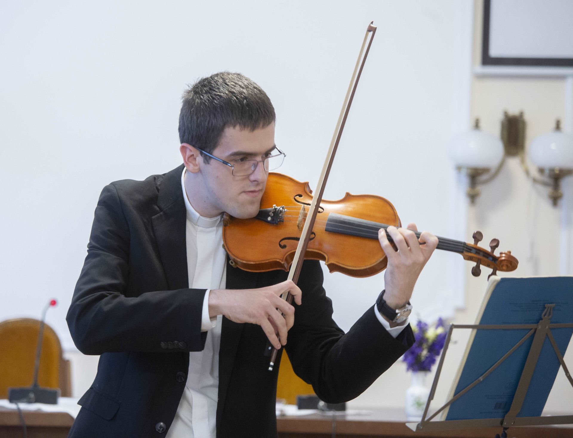 – Az egyházzene iránti érdeklődésed alapja a viszonylag magas szintű zenei képzettséged. Művészi énekhangodat a nagyszombati feltámadási szertartáson is hallhattuk, a Húsvéti Öröméneket énekelted. Emellett hegedűjátékoddal is találkoztunk már többször is.