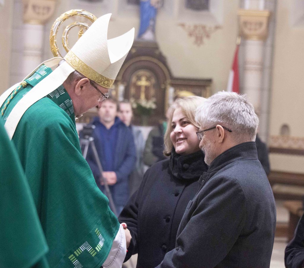 „Ha mi is ilyen hittel tudunk Jézussal találkozni, akkor a mi szívünkben is megtörténik a csoda” – fogalmazott püspök atya, majd elmélkedésének második részében a házaspárokhoz szólt, akik egymás iránt különleges felelősséggel vannak, hiszen nekik egymást kell elsegíteniük a Jézussal való találkozásra, hogy rátaláljanak az élet teljességére a szeretetben.