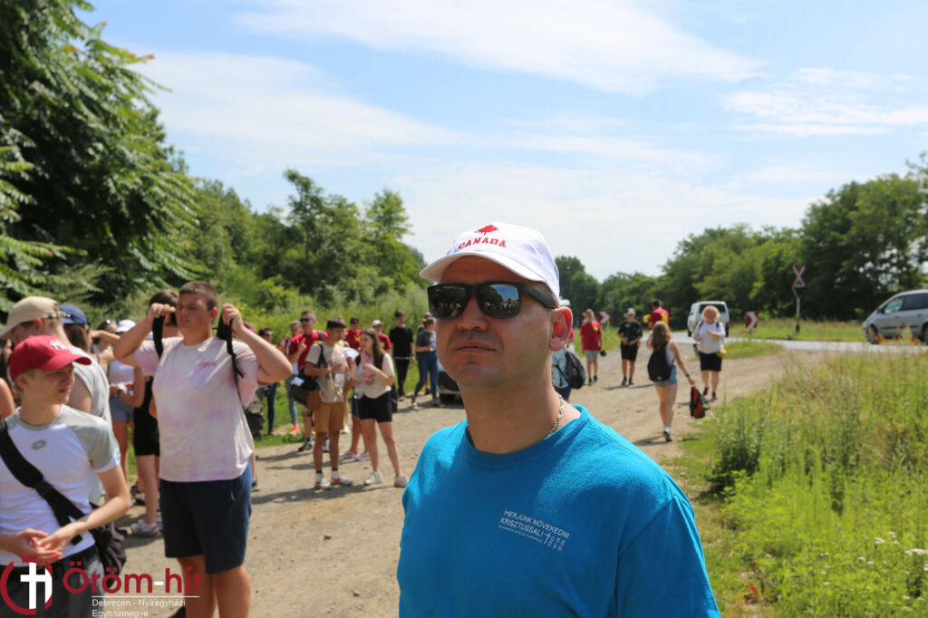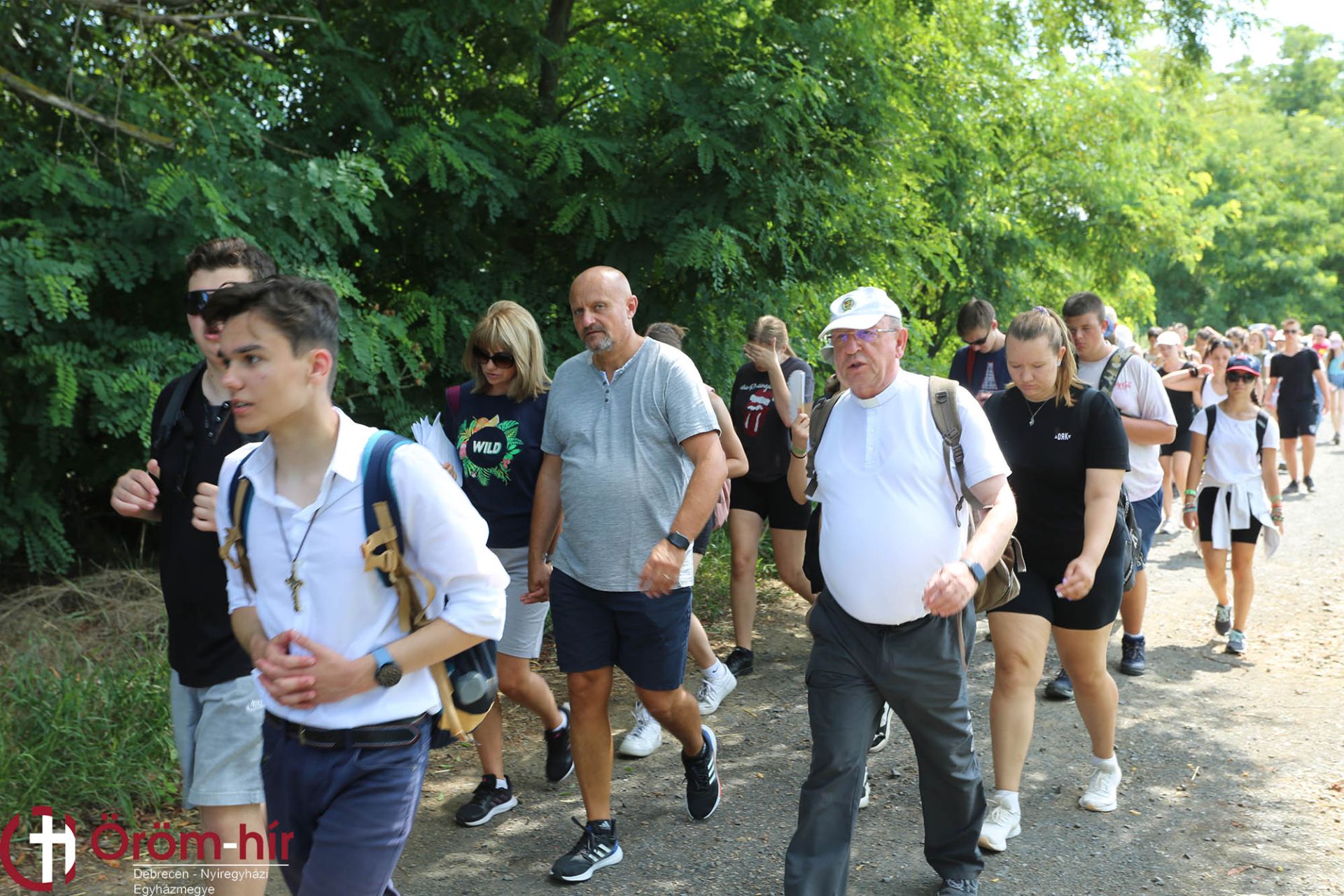 A gyalogos zarándoklaton Ferenc püspök kíséretében rózsafüzért imádkoztak, csöndes és énekes percek váltották egymást, az útszéli kereszteknél pedig néhány mondattal Csapó Márton atya egészítette ki az úton velünk tartó gondolatainkat.
