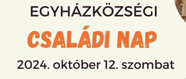 2024. október 12. szombaton egyházközségi családi napot szervezünk plébániánkon.A program 10 órakor ünnepi búcsúi szentmisével kezdődik, utána a plébánia udvarán folytatódik.A jegyek megvásárolhatóak ...