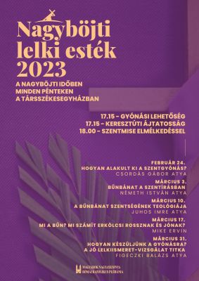 Péntekenként NAGYBÖJTI LELKI ESTÉK lesznek templomunkban.A szentmisében a bűnbánat szentségéről tartanak elmélkedéseket az atyák. 17:15-től keresztutat imádkozunk. A keresztút és a szentmise idején ...