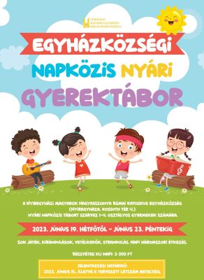 A Nyíregyházi Magyarok Nagyasszonya Római Katolikus Egyházközség nyári napközis tábort szervez 1-4. osztályos korú római katolikus hit-és erkölcstan oktatásra járó gyermekek számára.A gyermekek ...