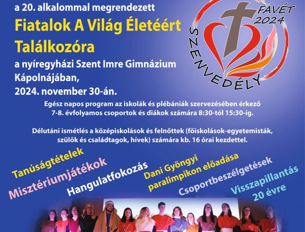 A Debrecen-Nyíregyházi Egyházmegye plébániáiról, köznevelési intézményeiből várják a hetedik és nyolcadik évfolyamos tanulókat 2024. november 30-án, a huszadik alkalommal rendezett Fiatalok A Világ ...