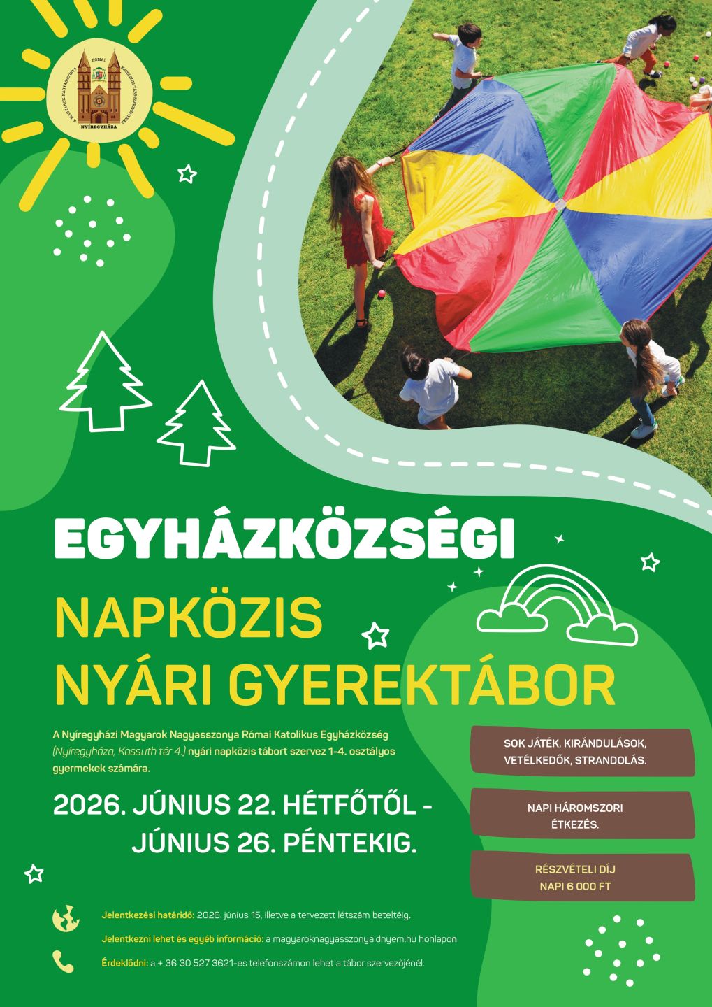 A Nyíregyházi Magyarok Nagyasszonya Római Katolikus Egyházközség nyári napközis tábort szervez 1-4. osztályos korú római katolikus hit-és erkölcstan oktatásra járó gyermekek számára. A gyermekek felügyeletét, a velük való foglalkozásokat plébániánk hitoktatói végzik.