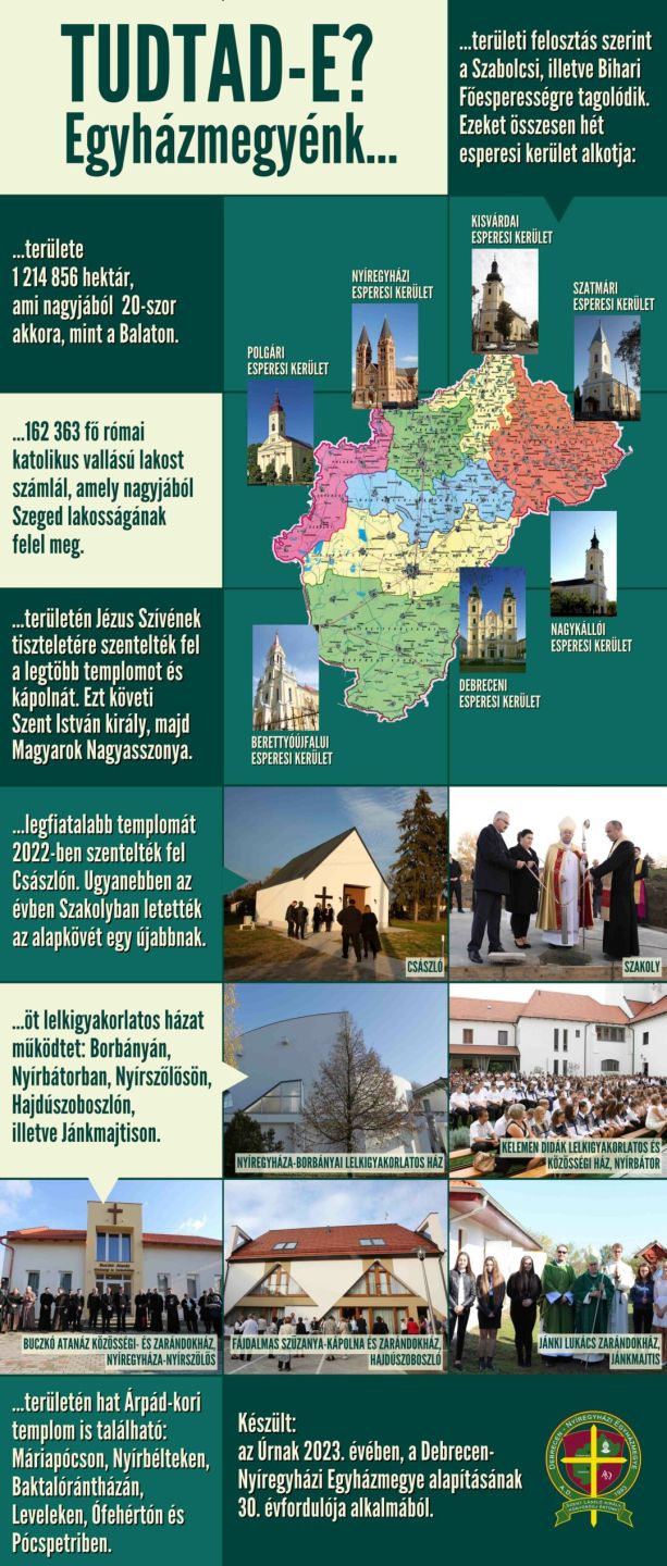 A Debrecen-Nyíregyházi Egyházmegye ebben az évben ünnepli alapításának 30. évfordulóját, amelyről az egész év során mintegy 30 egyházmegyei programon, kiemelt rendezvényeken emlékeztek/emlékeznek meg. Az elmúlt három évtizedre való visszatekintést, az események felidézését segíti a fotókban, adatokban gazdag tíz db. tematikus roll-up-ból álló vándorkiállítás, amely az igen gazdag, eseményekben, hagyományokban, intézményekben, lelkiségi mozgalmakban bővelkedő, közösségekben aktív egyházmegyét mutatja be.