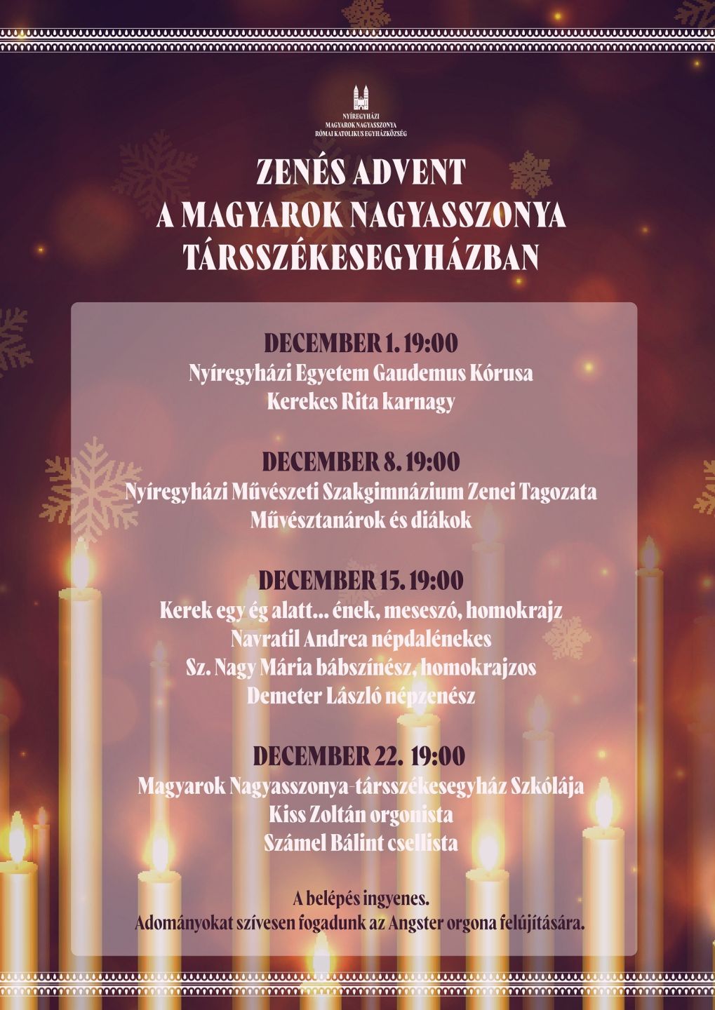 Advent vasárnapjain az esti szentmisét követően Zenés áhítat lesz templomunkban, várjuk a kedves testvéreket szeretettel.